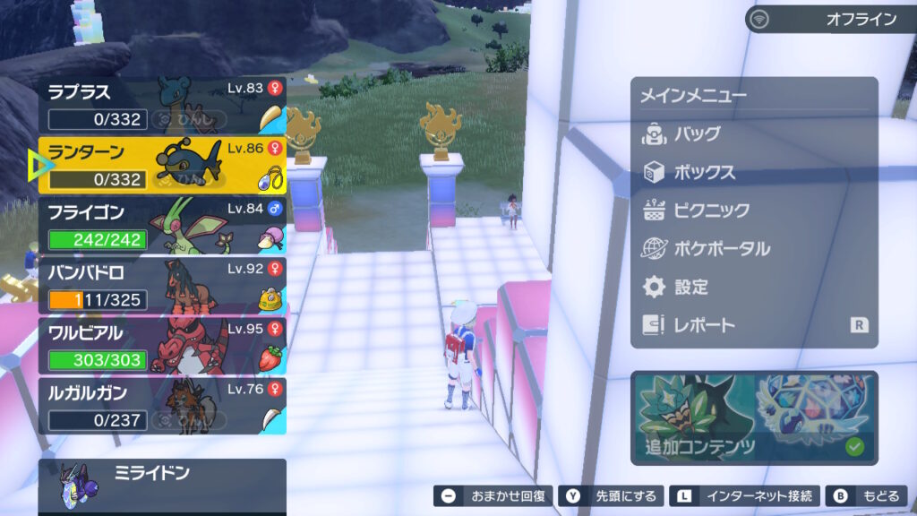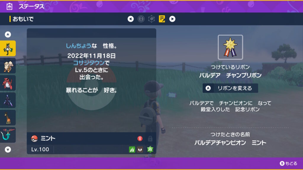 ミントちゃんだけでなく、いっしょに殿堂入りしたワルビアルやウィンディ、そしてブルーベリー学園チャンピオンになるまでにがんばってもらったラプラスやクワガノンも同じように努力値を振り直してあげたいと思います。