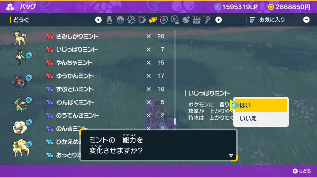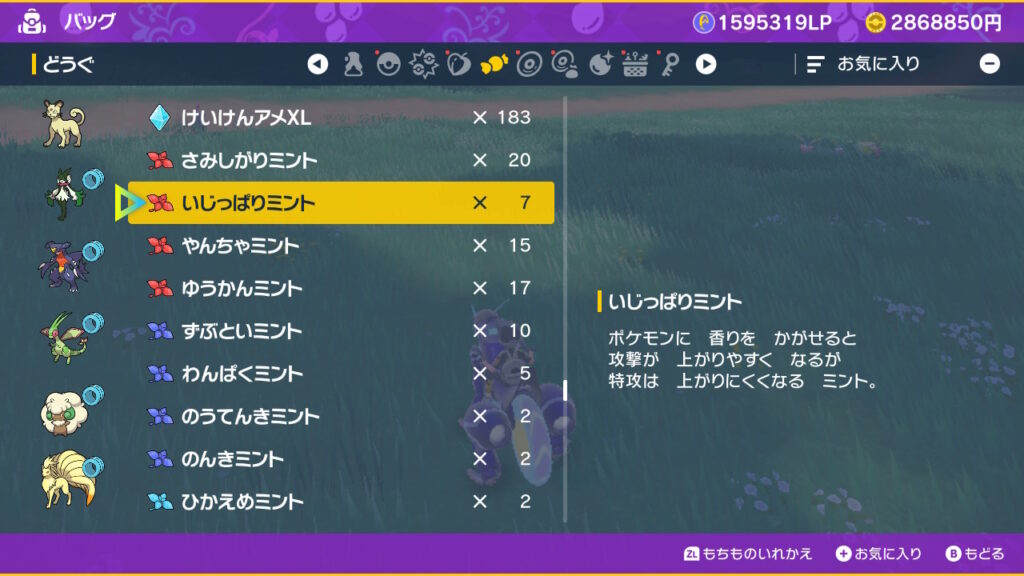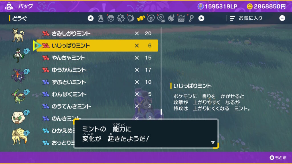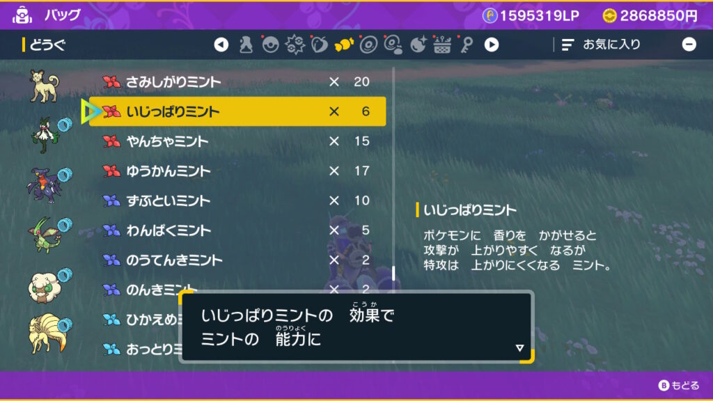各種ミントはそんな性格による能力の上がりやすさ下がりやすさの補正を好みの性格のものに変えることができます。