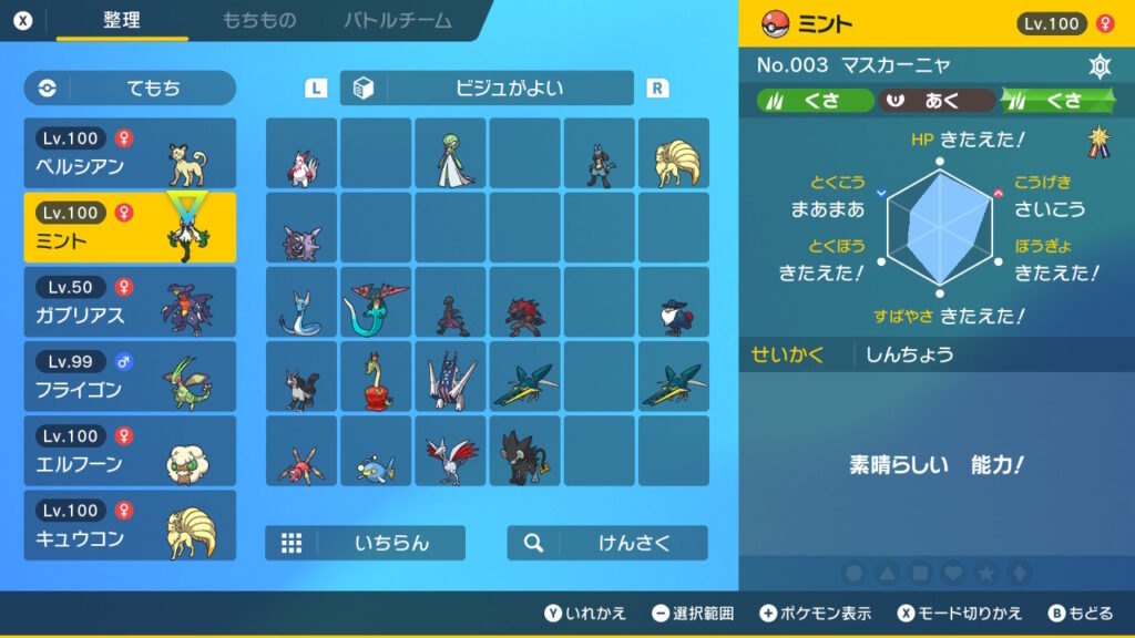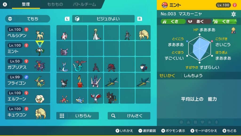 まず、手持ちではなくボックスを開いてミントちゃんを確認します。