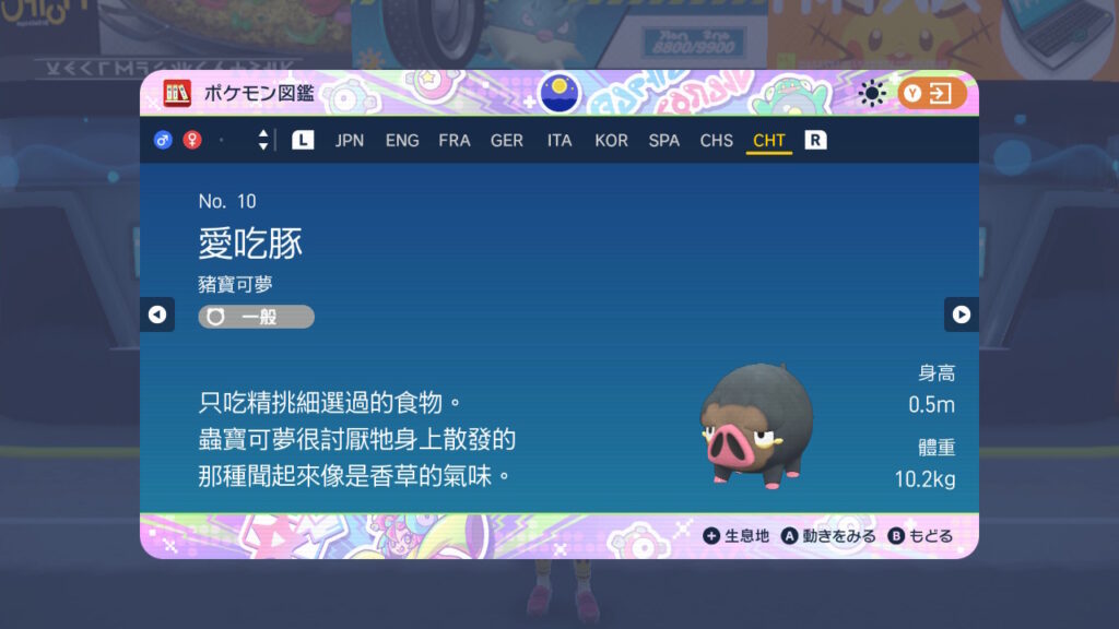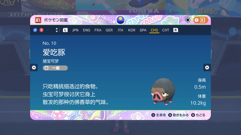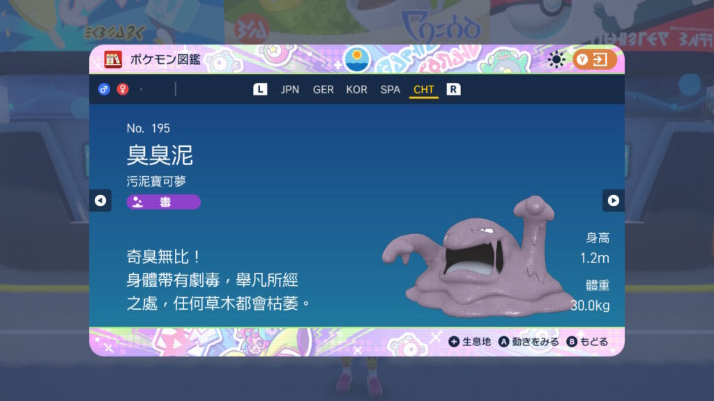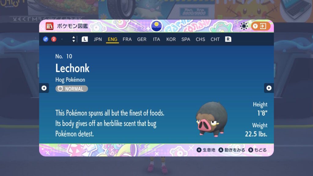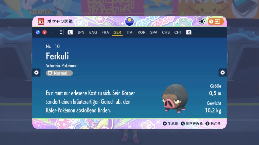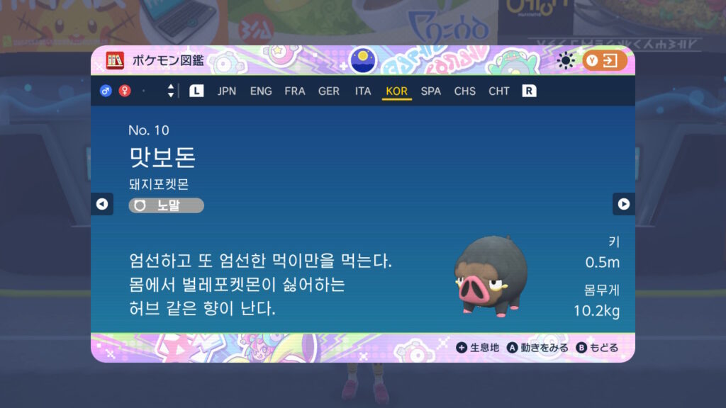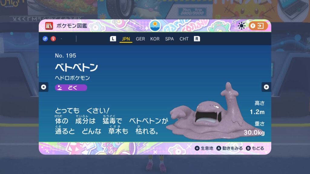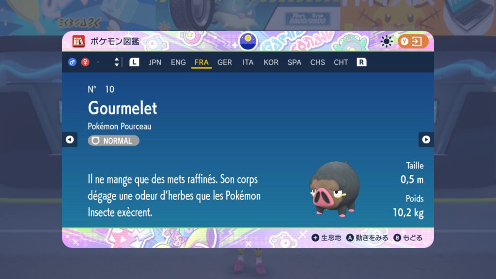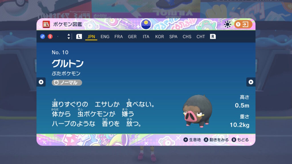 グルトンの海外版ポケモン図鑑(ポケモンバイオレットより)