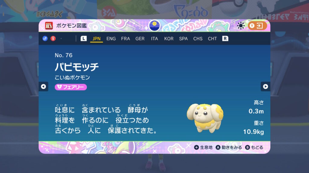 グルトンの進化形パフュートン、あとパピモッチとバウッツェルも9言語が埋まりました!